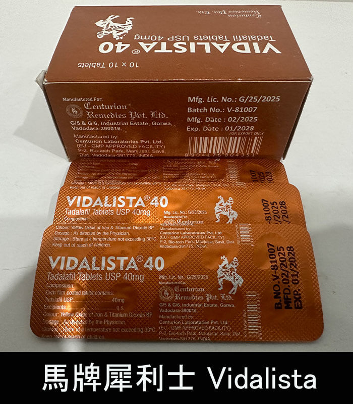 • 商品名稱:馬牌犀利士 Vidalista 40mg、犀利士學名藥